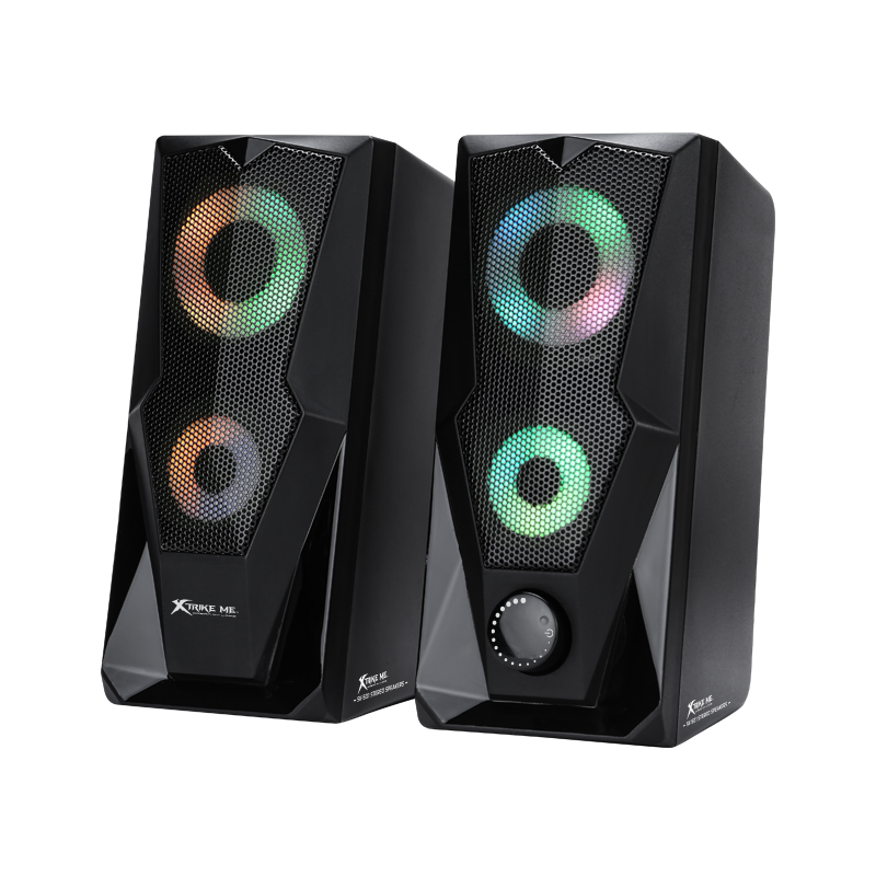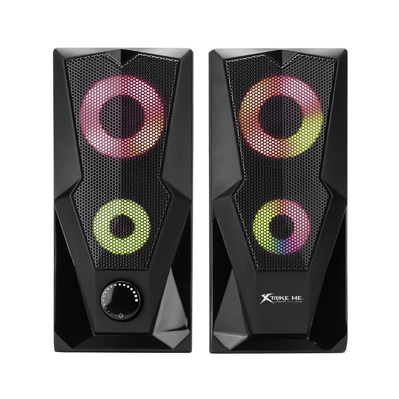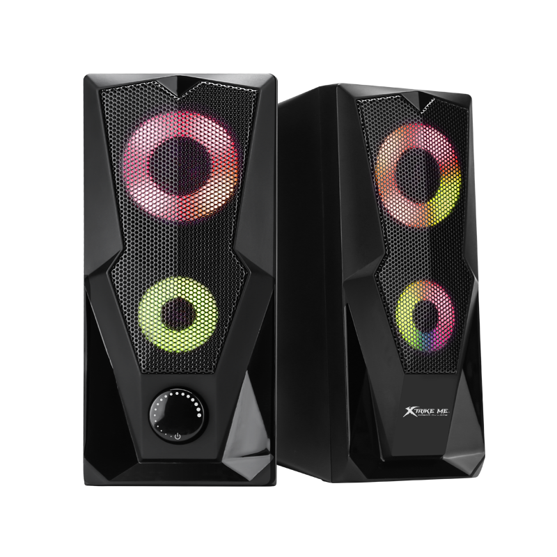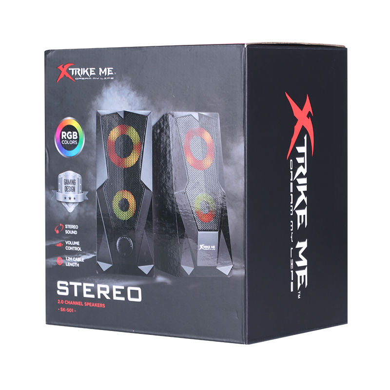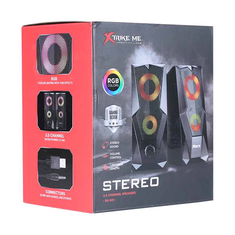Haut Parleur Gaming Xtrike Me SK-501 - Puissance 6W (2x 3W) - Connectivité: USB et Jack 3.5mm - Éclairage 7 couleurs avec effets RGB - Fréquence 160 Hz/ 20 KHz - Dimensions 2x 2.5" - Longueur du câble 1.2m - Garantie 1 an