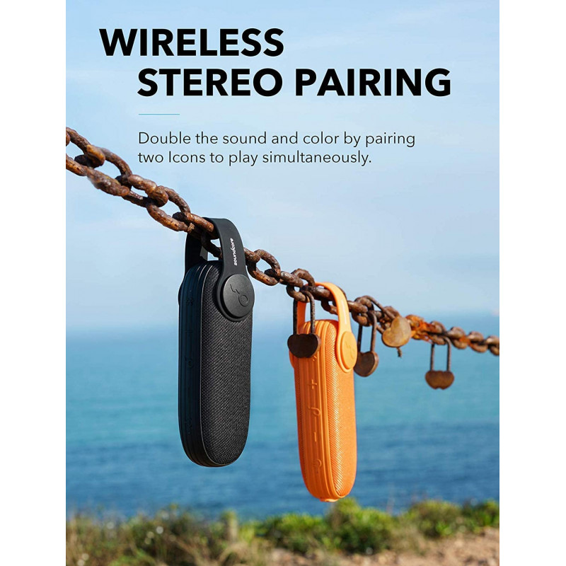 Haut parleur Portable Anker Soundcore Icon - Connectivité Bluetooth - Etanche IP67 - Technologie Bass Up pour produire une puissance audio époustouflante - Autonomie jusqu'à 12 heures - Microphone intégré pour les appels mains-libres - Sangle amovible - Possibilité d'associer 2 Icon via un seul smartphone ou tablette pour 2 fois plus de son - Idéal pour la randonnée, Le Camping, Voyage, Sorties et vos aventures - Batterie Lithium-ion Rechargeable - Couleur Noir - Poids 181g - Garantie 1 an