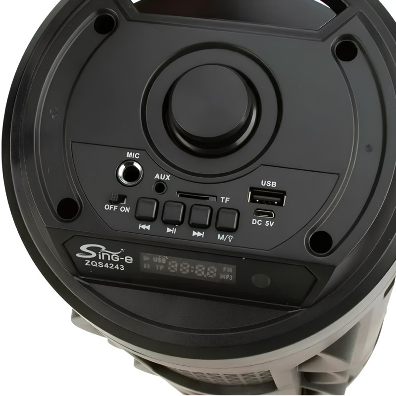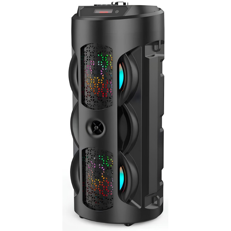 Haut Parleur Bluetooth ZQS4243 - Puissance : 16W (8W x 2) - Connectivité : Bluetooth 5.0, USB, Aux, Carte mémoire - Interface : USB - Capacité de la batterie : 1800 mAh - Réponse en fréquence : 45Hz-18KHz - Rapport signal /produit : 50dB - Radio FM - Haut-parleur: 2x 4" - Télécommande - Lumières RGB - Tension : CC 5V - Couleur : Noir - Garantie 1 an