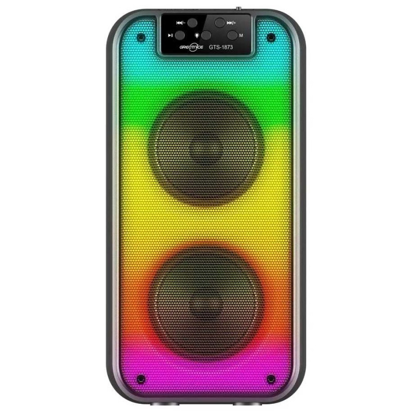 Haut-Parleur GTS-1873 - Puissance de sortie : 10 W - Fréquence : 100 Hz - 20 kHz - Batterie : 1200 mAh - Temps de charge : 2 à 3 heures - Taille Haut-Parleur : double 4 pouces - Connectivité : Bluetooth, USB, carte TF, radio FM, entrée auxiliaire - Éclairage : RGB / Effet de flamme - Couleur : Noir - Garantie 1 an
