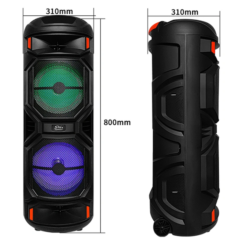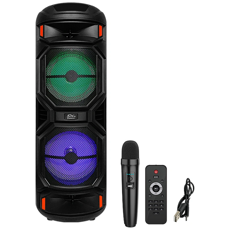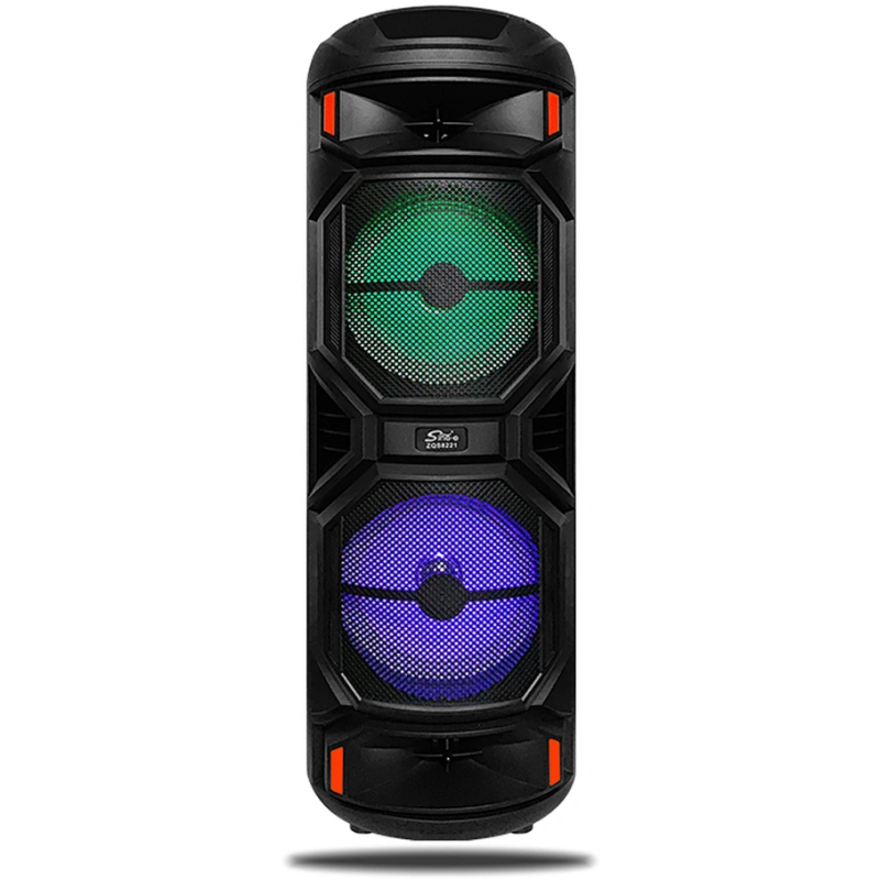 Haut Parleur ZQS 8221 - Connectivité: Sans Fil (Bluetooth) - Communication: USB ,SD, FM, AUX - Puissance d’entrée: 40 Watts ( 2x 20w) - Taille du haut-parleur : (Double) 8 pouces - Batterie: 4500mAh - Microphone et Télécommande - La stéréo intégrée et la stéréo à 360° sont fournies - Radio FM - Fréquence : 45Hz-18Khz - Poids : 6kg - Couleur noir - Garantie 1 an