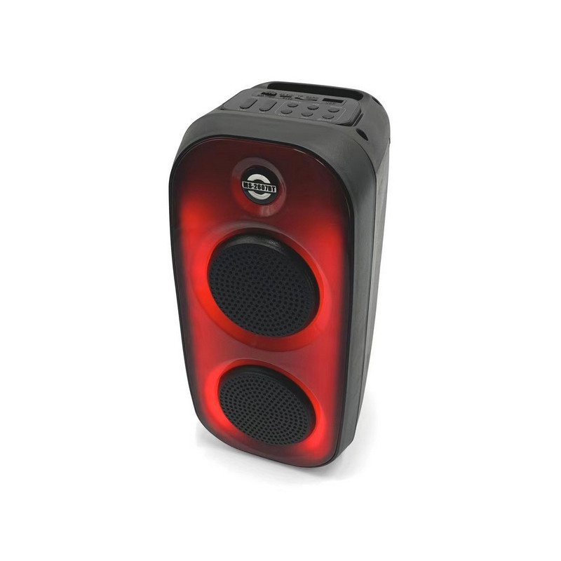 Haut-Parleur MS-2606BT - Puissance de sortie : 2x 8 W - Fréquence : 50 Hz - 20 kHz - Batterie : 2400 mAh - Taille Haut-Parleur : 3 pouces (Double) - Bluetooth : 5.0 - Distance BT : 10 m - Lumière RGB - Prise en charge : lecture de musique sur carte TF / USB - Couleur : Noir - Garantie 1 an