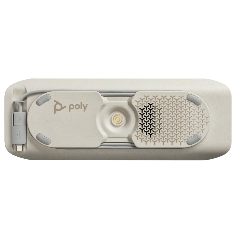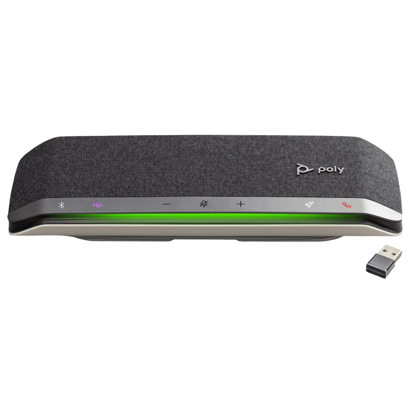 Haut-parleur Intelligent Poly Sync 40+ - Taille du haut-parleur : 50 mm - Bande passante du haut-parleur : 75 Hz à 20 kHz - Nombre de microphones : 3 - Sensibilité (microphone) : -45 +/-3 dB - Rapport signal/bruit : >55 dB - connectivité : Bluetooth 5.1 - Portée sans fil : jusqu'à 30 m - Niveau de pression acoustique nominal : 89 dB SPL - Autonomie de la batterie : jusqu'à 30 heures (temps de conversation) - Temps de charge : < 5 heures - Commandes tactiles : Fin d’appel/réponse, Coupure du son, Volume +/-, Bouton de fonction programmable - Commandes par boutons : Fin d'appel/réponse, Coupure du micro, Volume +/-, Bouton de fonction programmable, Appairage Bluetooth, Microsoft Teams - étanche à la poussière et à l'eau : IP64 - Dimensions (L x P x H) : 183 x 350 x 55 mm - Poids : 0,61 kg - Couleur Silver - Garantie 1 an