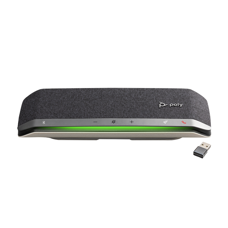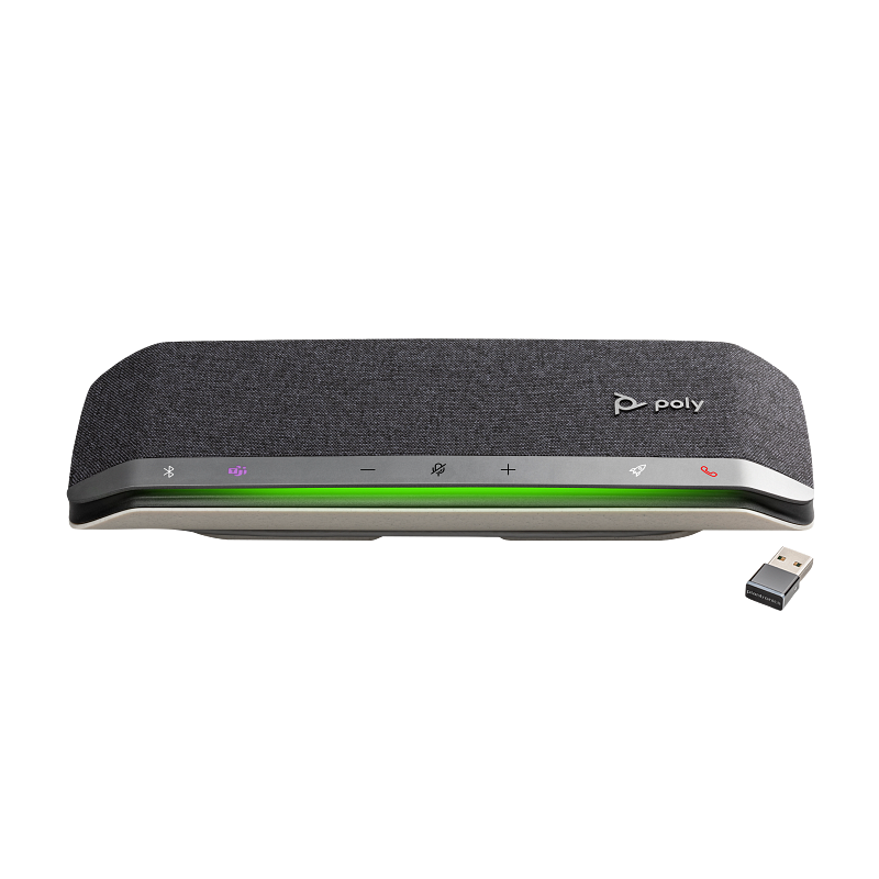 Haut-parleur Intelligent HP Poly Sync 40+ - Taille du haut-parleur: 50 mm - Compatibilité: Connectivité PC via le câble combiné USB Type-A et USB Type-C / Connectivité smartphone via Bluetooth - Sensibilité (microphone): -45 +/-3 dB - Rapport signal/bruit: 55 dB - Temps de charge: 5 h - Type de charge: Câble - Autonomie de la batterie Jusqu’à 30 h - Type de batterie: Batterie Li-ion rechargeable - Longueur du câble: 1050 mm - Plage sans fil: Jusqu’à 30 m - Version Bluetooth 5.1 - Niveau de pression sonore nominale: 89 dB SPL - Nombre de microphones: 3 - Type de microphone: Three-microphone steerable array - Bande passante du haut-parleur: 75 Hz à 20 kHz - Bande passante du microphone: De 100 Hz à 6.7 kHz - Systèmes d'exploitation supportés: Windows 11 / Windows 10 / macOS - Couleur: Argent - Garantie 1 an