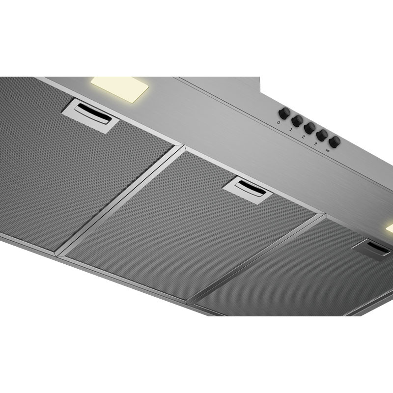 Hotte pyramidale - Largeur : 90 cm - Capacité de ventilation maximale : 613 m³/h - Capacité d'aspiration minimum : 253 m³/h - Niveaux de puissance : 3 Niveaux - Type de commandes : Bouton poussoir - Eclairage LED - Nombre d'ampoules : 2 - Puissance des éclairages : 3 W - Niveau sonore maximum : 69 dBA - Niveau sonore minimum : 48 dBA - 3x Filtres à graisse - Filtre à graisse Metal – Cassette (Stainless Steel) - Filtres à charbon - Filtres lavables en lave-vaisselle - Poids : 15.9 kg - Dimensions (HxLxP) : 102.5 x 89.8 x 50.5cm - Couleur : inox - Garantie 1an