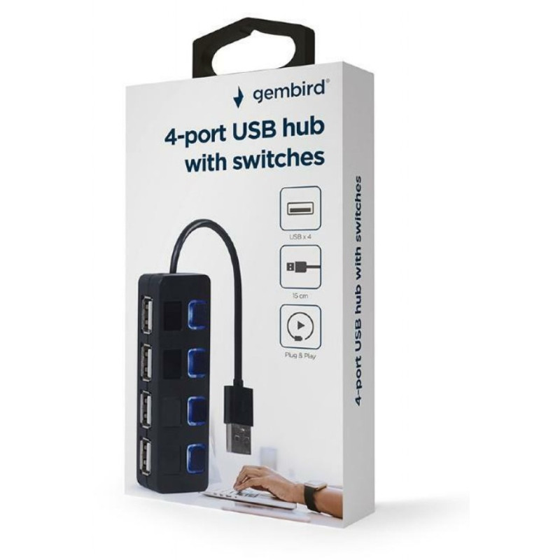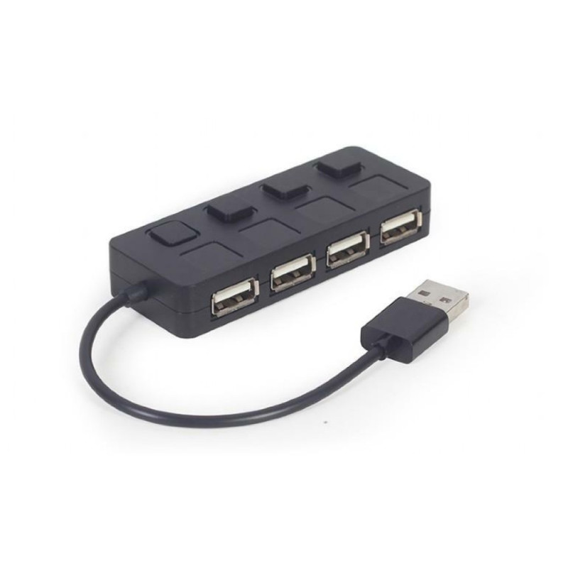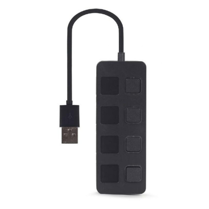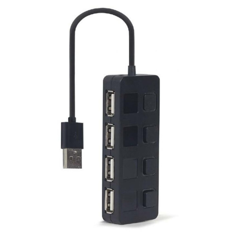 Hub USB avec 4 ports avec Cable USB intégré 15 cm - Norme USB 2.0, très haute vitesse, 480 Mbps max - Matériel : plastique - Couleur : Noir - Garantie 1 an