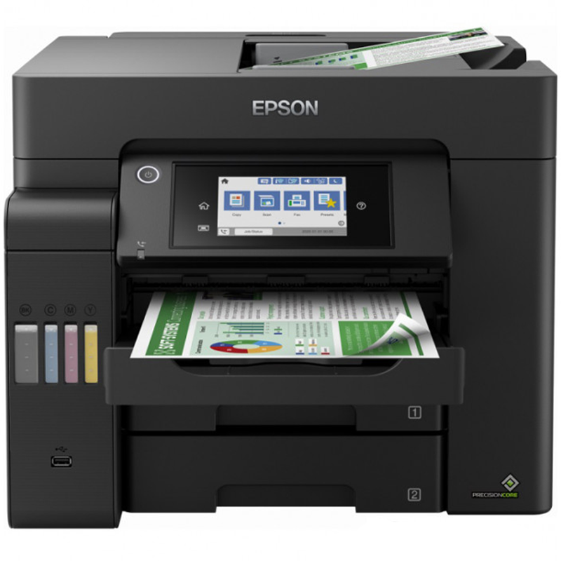 Imprimante à réservoir intégré Multifonctions 4 en 1 Epson EcoTank L6550 - Ecran tactile - Format A4 - Mode d'impression: Tête d’impression PrecisionCore - Fonctions 4en1: Impression, Numérisation, Copie, Télécopie - Recto-verso automatique - Temps de sortie de première page Monochrome 5.5 Secondes, Couleur 9.5 Secondes - Vitesse d'impression 25 pages/min Monochrome, 25 pages/min Couleur - Résolution de la numérisation 1200 x 2400 DPI - Fax à grande vitesse en noir et blanc et en couleur - Connectivité: USB, Ethernet, Wi-Fi, Wi-Fi Direct -