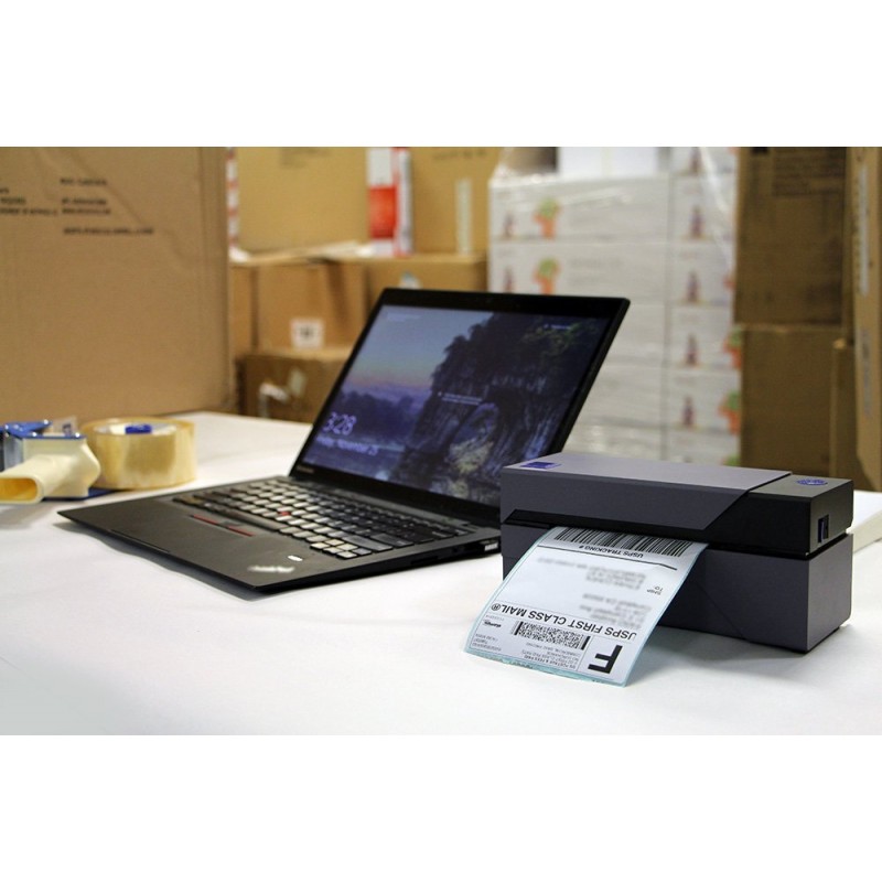 Imprimante Point de vente Thermique - Interface USB - Vitesse d'impression 150 mm /s - Technologie Advanced Thermal Direct imprime sans toner ni encre - Imprime des étiquettes jusqu'à 104.1 mm de largeur - Compatible avec Windows et Mac - Dimensions: 203. 2 x 101.6 x 101.6 mm - Poids: 725.7 g - Couleur Noir - Garantie 1 an