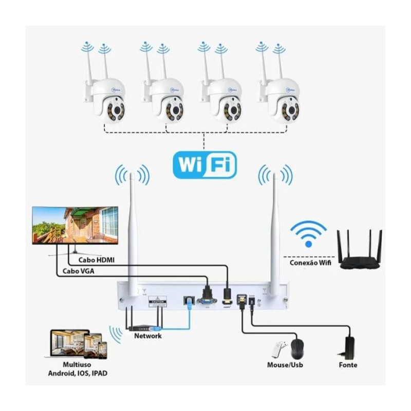 Kit de Surveillance JORTAN NVR + 4 Caméras Externes 2MP - Résolution:1280 x 960 (2MP) - Connectivite : Wifi - format de compression vidéo: H.265 - Format du Capteur: CMOS - 4 channels - 4in1 - Audio bidirectionnel - étanche à l'eau: IP66 - Garantie 1 an