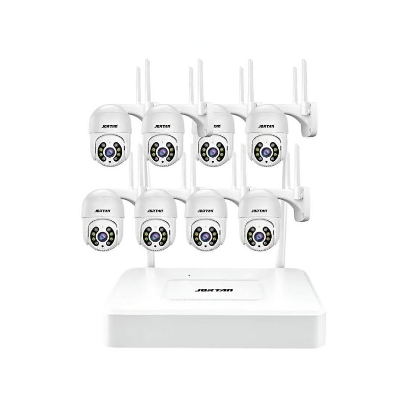 Kit de Surveillance JORTAN NVR + 8 Caméras Externes 2MP / WiFi / IP66 / Blanc