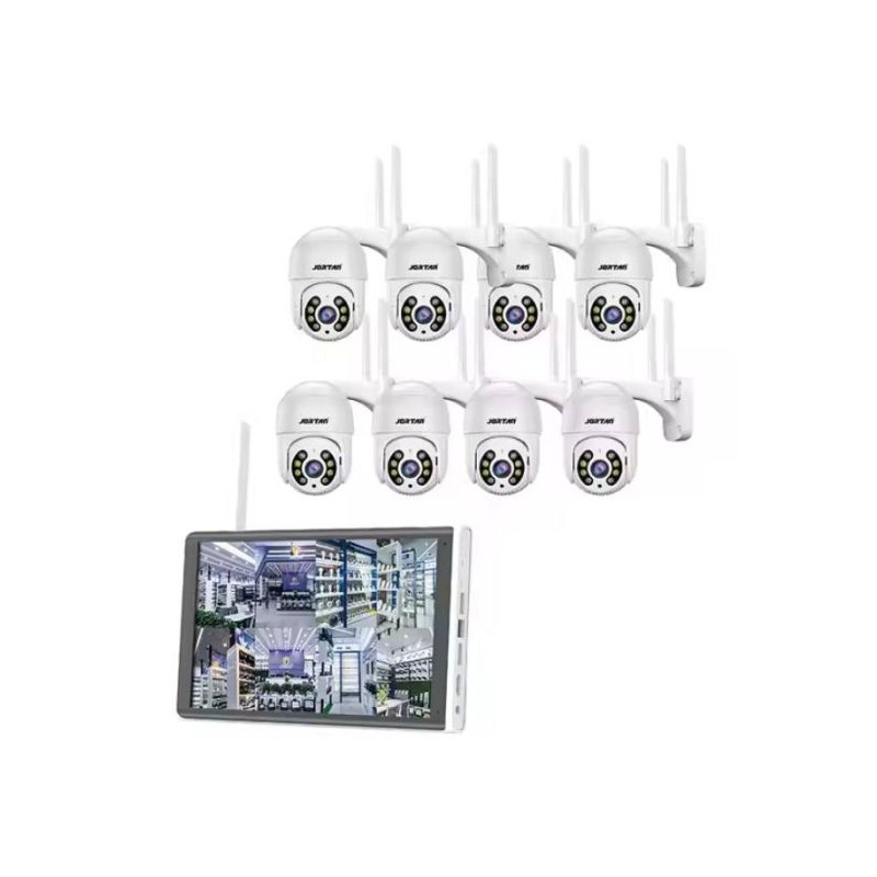Kit de Surveillance JORTAN 8 Caméras Externes 2MP avec Écran 15.6" Full HD / WiFi / IP66 / Blanc