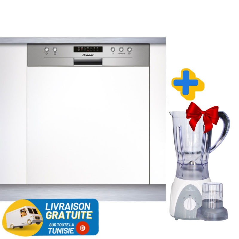 Lave Vaisselle Encastrable BRANDT BDB424LX / 14 Couverts / inox + Blender 2en1 400W Offert