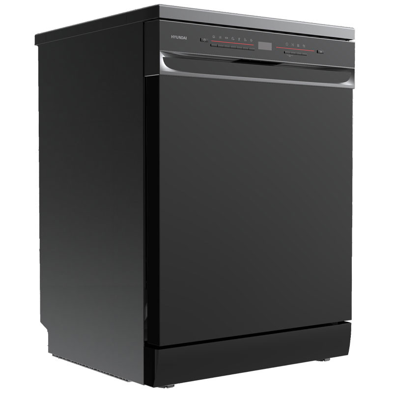 Lave Vaisselle HYUNDAI - Nombre de Couverts : 14 couverts - Nombre de Programmes : 9 Programmes - Afficheur en LED avec programmateur - Nombre de Tiroirs : 3 Tiroirs - Contrôle avec boutons - Ouverture automatique de la porte - Fonction Extra séchage - Fonction demi charge - Sécurité enfants - Niveau Sonore : 52dba - Dimensions (L x P x H) : 598 × 550 × 815 mm - Couleur : Noir - Garantie 3ans