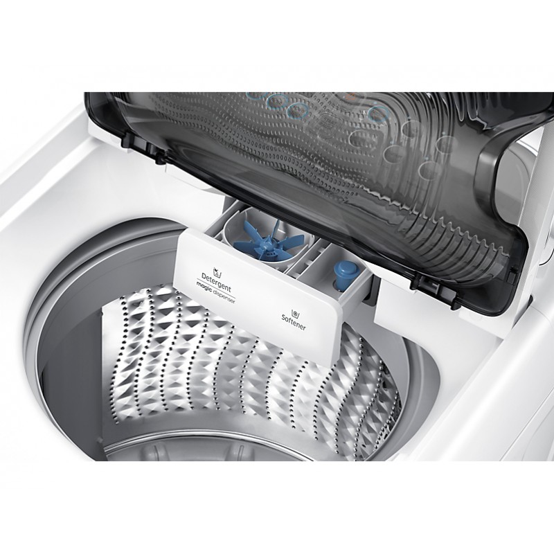 La structure unique du ...Pulsateur Wobble... technologie innovante créée par Samsung, crée un flux vers la gau che, la droite, le haut et le bas pour obtenir un lavage dynamique en 3 dimensions.??