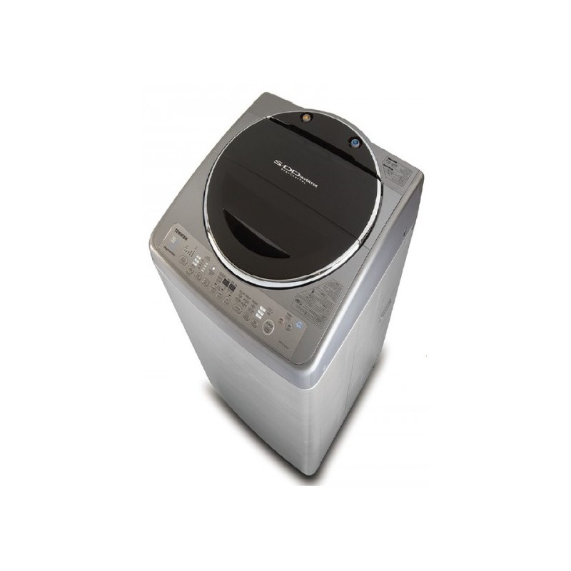 Machine à laver Top Load Toshiba - Capacité 13Kg - Couleur Silver - Système Direct Drive - Vitesse d'essorage Max: 700 tr/min - Couvercle chromé élégant - Moteur Inverter - Filtre à charpie - Deux entrées d'eau (chaud / froid) - Dimensions 645 x 1088 x 685 mm - Garantie 5 ans