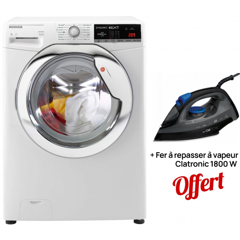 Lavante Séchante Hoover 10KG / Blanc + Fer à repasser à vapeur Clatronic 1800W Offert