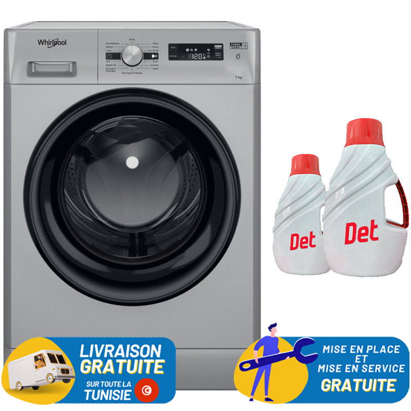 Machine à laver HUBLOT POSABLE Whirlpool FFWS 7235 SB NA / 7 Kg / Silver + Livraison + Installation et Mise en Marche Gratuites + Det 2.5L + Det 1L Offerts AVEC 50 DT Bon D'Achat