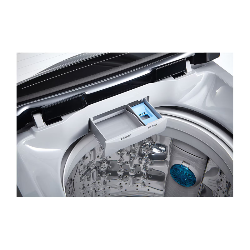 La chute d’eau latérale assure le meilleur mélange entre le détergent et l’eau en réduisant les résidus de lessive à l’origine des irritations cutanées et des allergies.