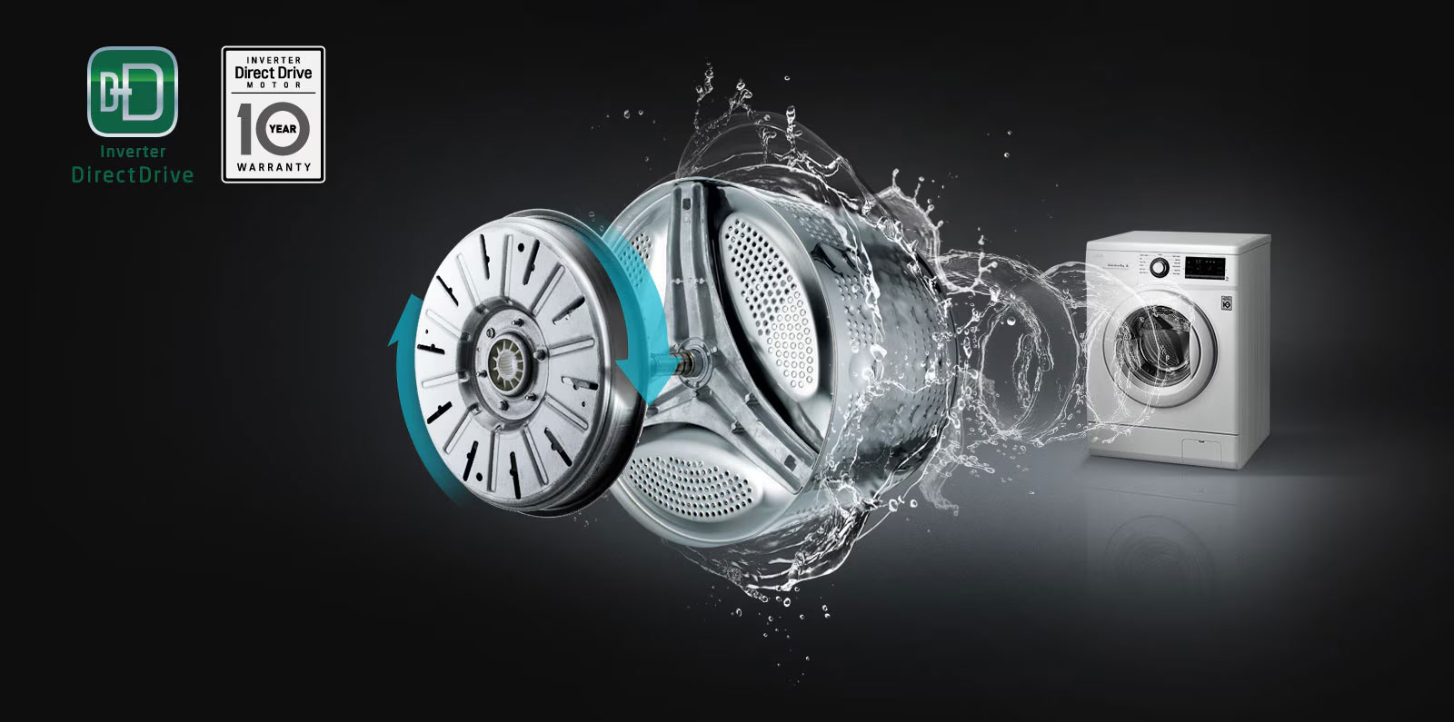 Le moteur Inverter Direct Drive de LG est directement fixé au tambour sans utiliser de courroie ni de poulie. Des pièces mécaniques moins nombreuses assurent moins de dissipation d’énergie, ce qui améliore les performances de lavage, garantit un faible bruit et des vibrations réduites, une plus grande durabilité et des économies d’énergie..