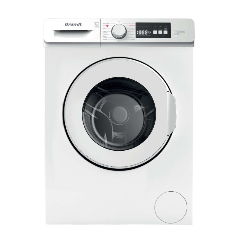 Lave linge 8kg Brandt BRANDT - Avec Afficheur - Capacité de lavage: 8 Kg - Vitesse d’essorage: 1400 tours/min - Consommation d’eau en litres par cycle: 48 L/cycle - Niveau de bruit de lavage: 62 dB - Niveau de bruit d'essorage: 81 dB - 15 programmes - Température d’eau : Froide, Chaude, Tiède - Lavage rapide - Couleur Blanc - Garantie 2 ans + Livraison + Installation et Mise en Marche Gratuites