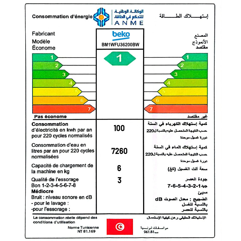 Machine a laver BEKO 6kg 1200tr INVERTER / Blanc / BM1WFU36200BW