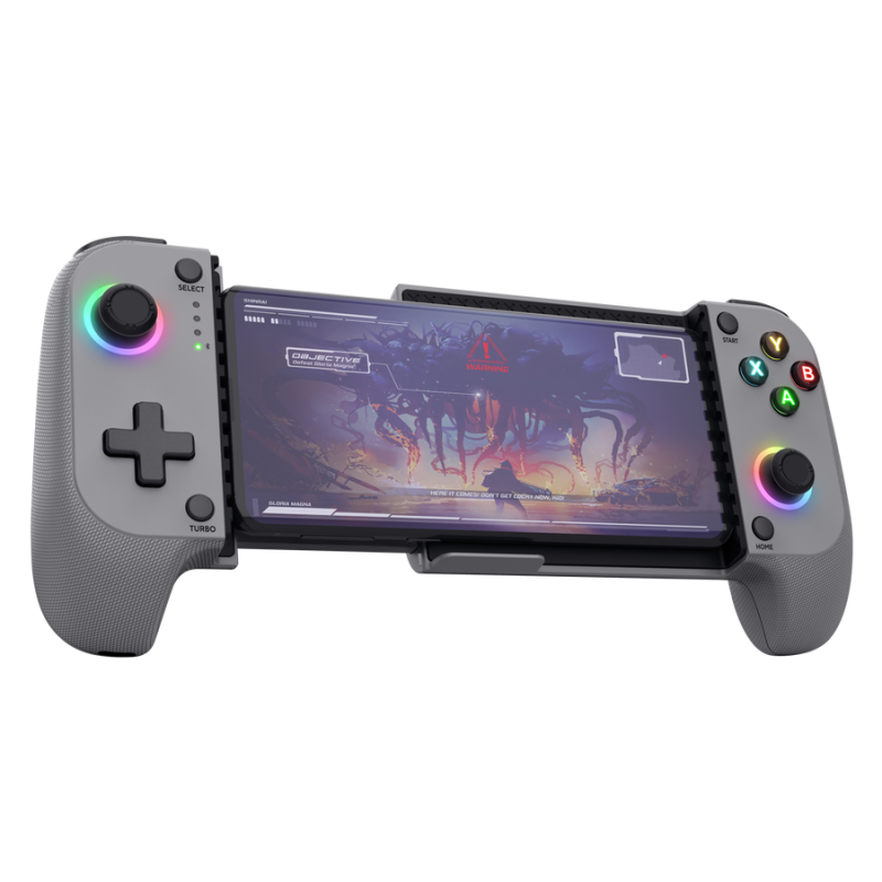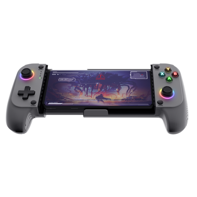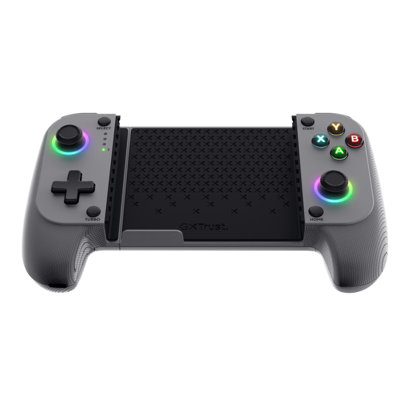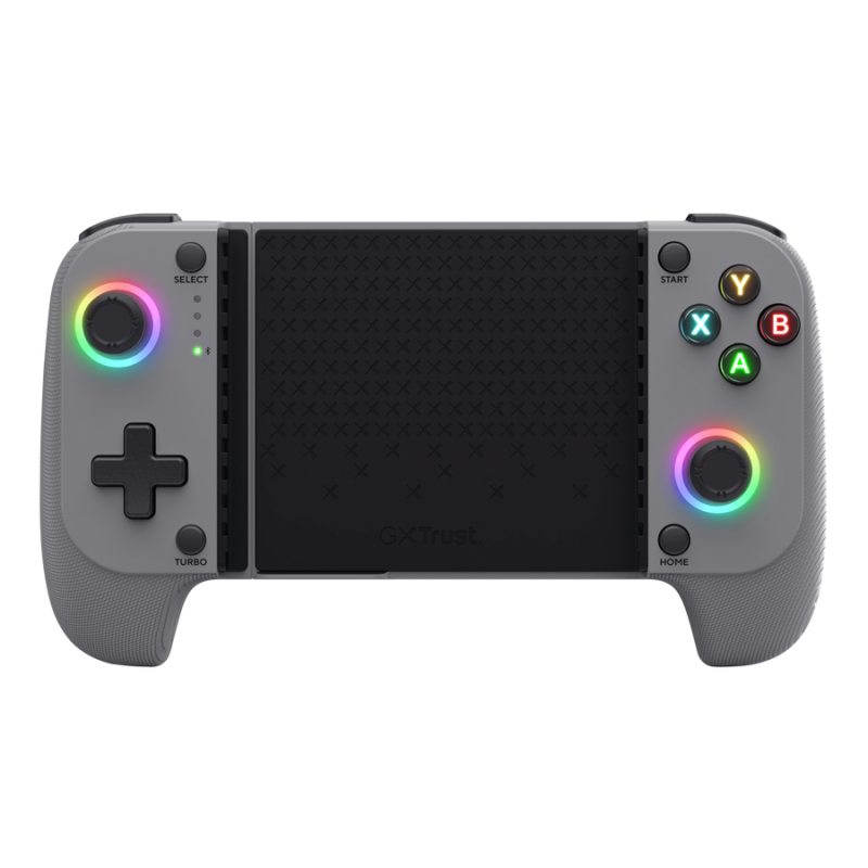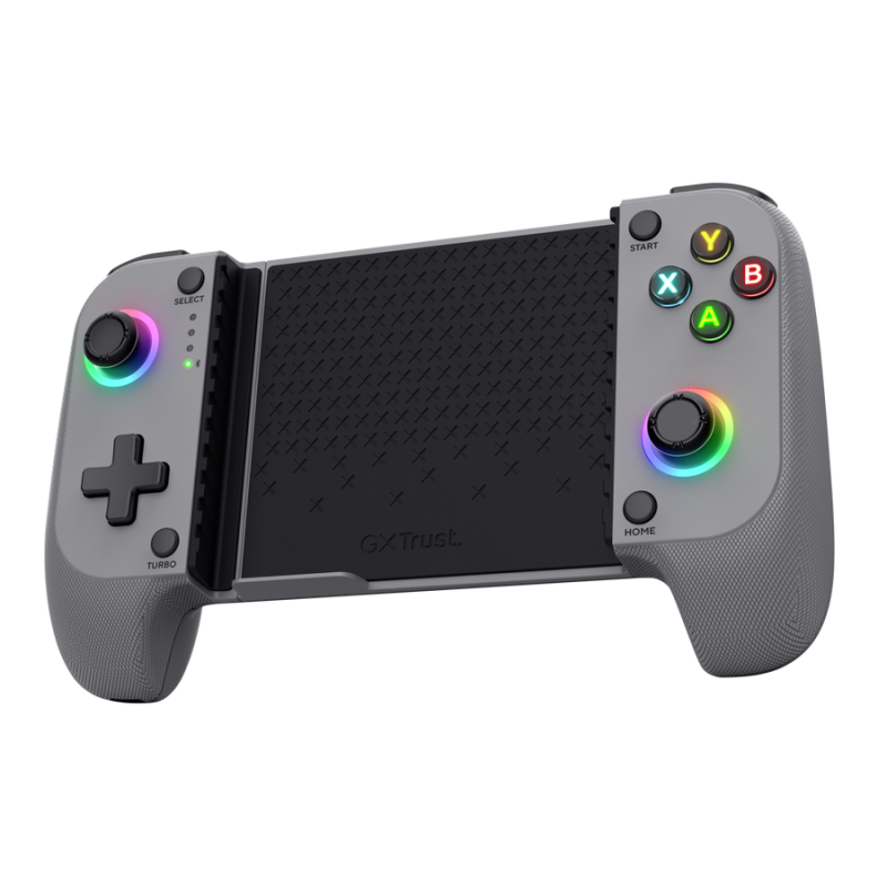 Manette de Jeu Sans Fil TRUST GXT 735G - Connectivité : Bluetooth 5.0 - Support pour téléphone portable - Capacité de la batterie : 600 mAh - Temps de recharge : 3 heures - Plateformes logicielles compatibles : Android, iOS - Nombre de boutons : 18 - Boutons de déclenchement - Manche analogique - Câble détachable - longueur du câble d'alimentation : 100 cm - Dimensions (L x H x P) : 185 mm x 46 mm x 106 mm - Poids : 220 g - Couleur Gris - Garantie 1 an