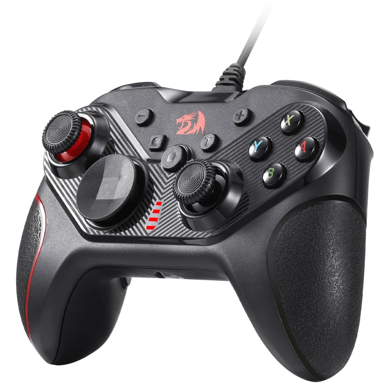 Manette Gaming Redragon RIFT G710 - 4 boutons arrière programmables avec macros - Connectivité : Filaire (USB Type-A) - Moteurs à double vibration - Précision du capteur à six axes - Macros personnalisables - Hauteur du joystick réglable, croix directionnelle détachable - Fonction turbo pour tir rapide - Retour haptique immersif - Longueur du câble : 1.8 m - Compatibilité : PC, Android, Nintendo Switch, PS3 - Couleur Noir - Garantie 1 an