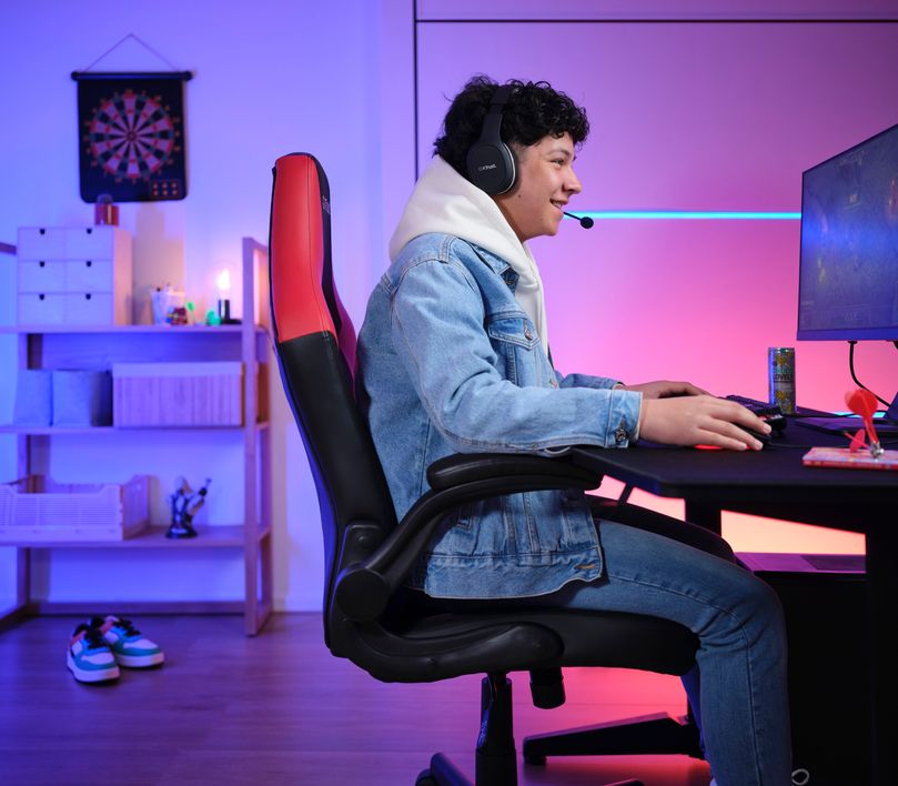 Chaise Gaming TRUST GXT703R RIYE - Nombre de roues: 5 en nylon noir - Matériau Cuir PU, tissu élastique - Poids maximum : 140 kg - Avec Accoudoirs rabattables en 2D - Hauteur du dossier : 78 cm - Largeur du siège : 54 cm - Profondeur d'assise : 52 cm - Avec Ascenseur de gaz - Taille du vérin à gaz : 120 mm - Cours sur vérin à gaz : classe 4 - Une fonction de verrouillage de l'inclinaison - Dimensions : 68 x 69 x 128 mm - Poids : 15500 g - Couleur Noir & Rouge - Garantie 1 an