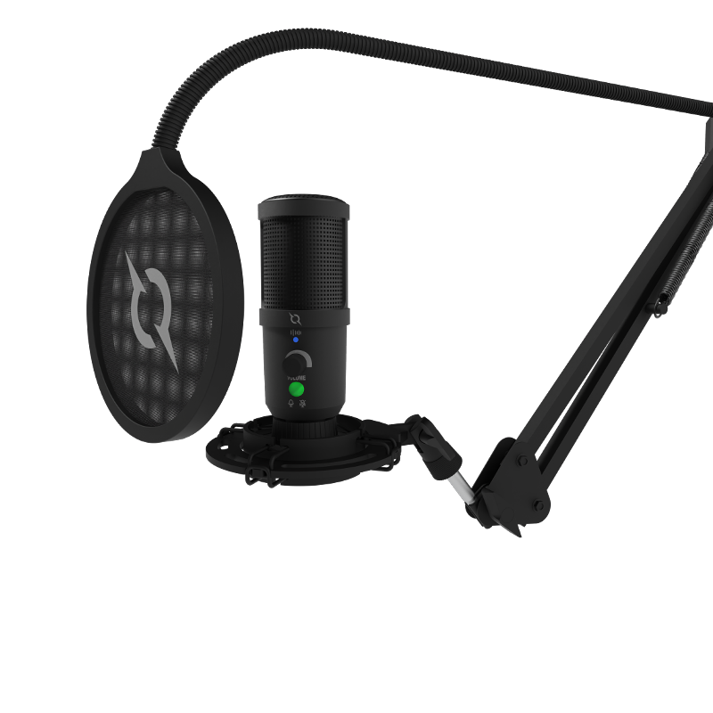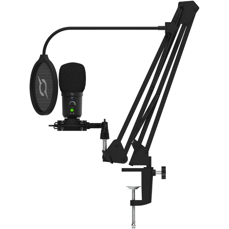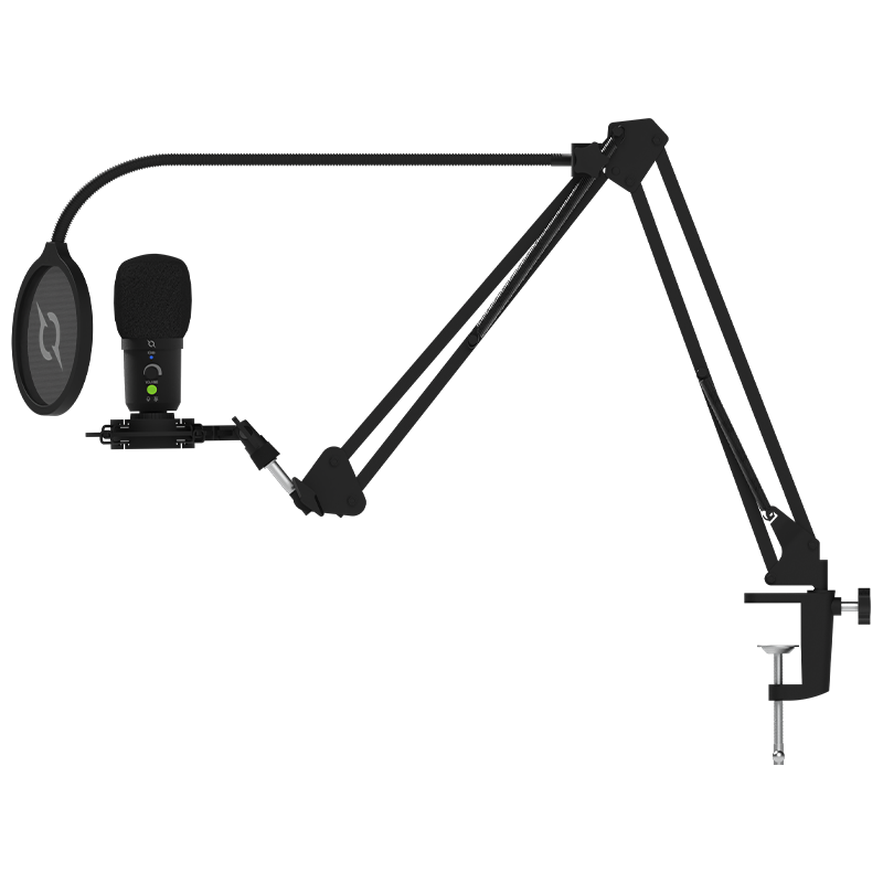 Microphone AQIRYS VOYAGER - Fréquence : 20 Hz - 20 kHz - Niveau de pression acoustique maximal : 115 dB - Rapport signal/bruit : 78 dB - Sensibilité : -36 dB ± 2 dB - Taux d'échantillonnage : 192 kHz/ 24 bits - Plage dynamique : 117 dB (1 kHz <1% T.H.D.) - Niveau d'entrée maximal : 104 dB - Niveau d'entrée maximal : 104 dB - Annulation du bruit - Trépied de bureau : 115 mm - Bras de perche : 395-735 mm - Accessoires inclus : Pare-brise, support de choc, filtre anti-pop, trépied de bureau, bras de perche, support de casque de bureau - USB 2.0 - Filaire - Prise audio 3,5 mm - Longueur du câble : 2,70 m - Compatible avec : PC et Mac - Couleur : Noir