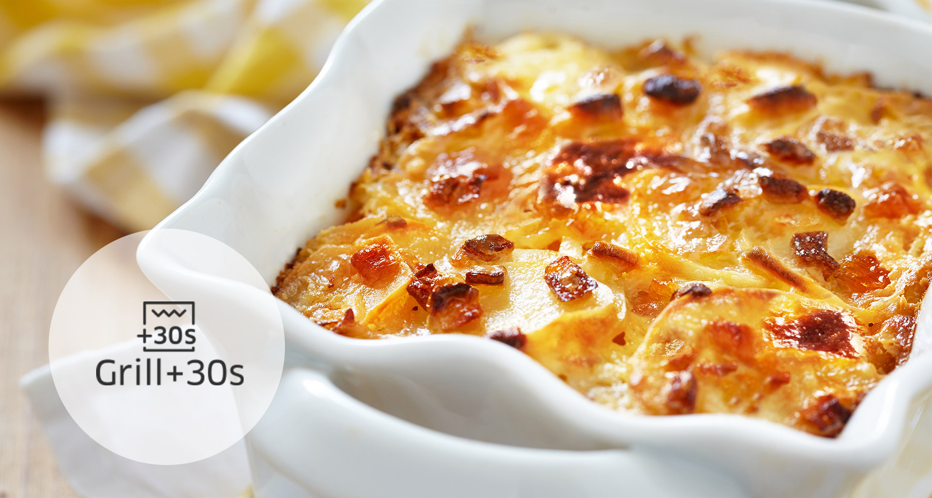 La fonction Brunissement Plus donne à vos plats la texture et la couleur idéales afin qu'ils soient à la fois beaux et bons. Le gril continuer à fonctionner encore 30 secondes à la fin du programme pour finir de dorer le plat et le rendre croustillant.