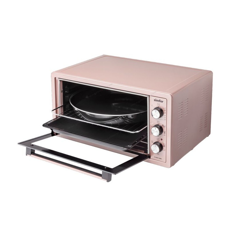 Four Simfer M7053 - Capacité 70L - Puissance 1800W - 5x Fonctions de cuisson - Fonction Decongélation - Fonction Yaourt - Fonction Nettoyage vapeur - Minuterie mécanique - Cavite Émaillé - Chaleur Tournante - Couleur Rose Gold - Garantie 1 an