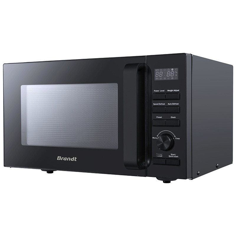 Micro-onde BRANDT - Type de pose : Pose libre - Volume : 25 Litres - Puissance micro-ondes : 900 W - Minuterie : 30 – 95 minutes - Diamètre du plateau tournant : 27 cm - Vitre extérieure en Verre - Dimensions (HxLxP) : 281 x 483 x 421 mm - Couleur : Noir - Garantie 1an
