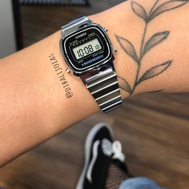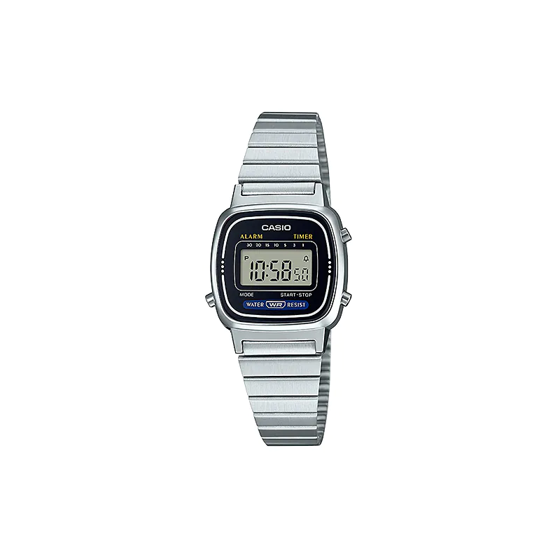 Montre pour Femme - Dimensions (HxLxD): 30.3 x 24.6 x 7.3 mm - Choronomètre 1/10 sec - 1 h - Alarme quotidienne - Calendrier automatique - Pile durée de vie: 2 Ans - Résistance à l'eau - Boitier en Résine - Bracelet en acier inoxydable - Fermeture réglable - Poids: 26g