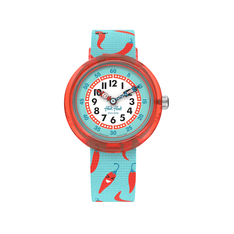 Les piments les plus tendances se retrouvent sur la montre pour enfants HAPPY CHILLI. Un cadeau pédagogique pour apprendre à lire l'heure avec style.