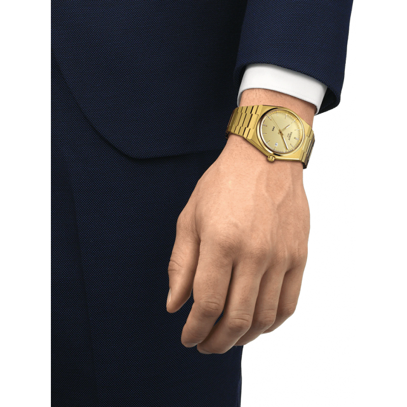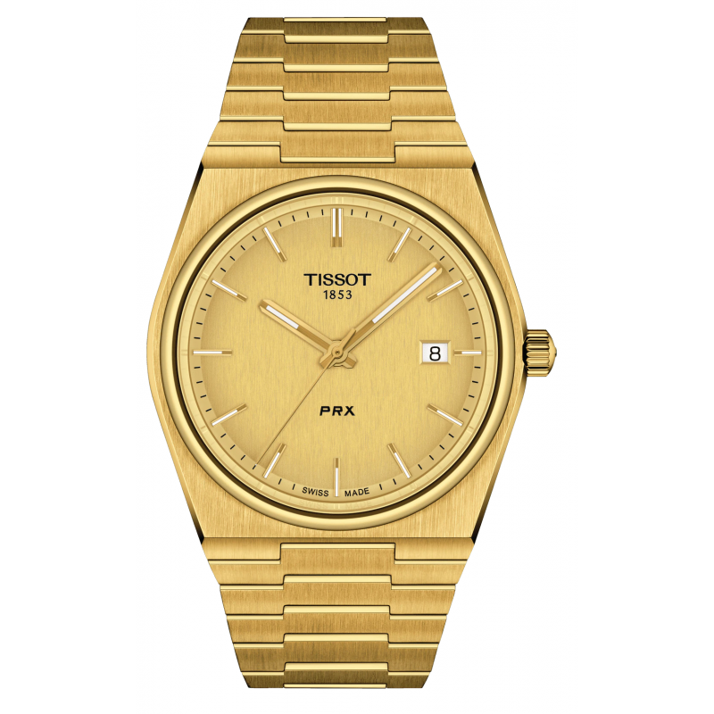 Montre Pour Homme Tissot PRX T1374101104100 - Fonctions Date & Heure - Mouvement Quartz - Glace saphir inrayable - Étanche 10 Bar - Matière du bracelet Acier inoxydable 316L, Gris - Type de fermoir Boucle papillon à poussoirs - Cadran: Champagne - Dimensions: 40 x 10.4 x 39.5 mm - Poids: 130 g - Garantie 2 ans