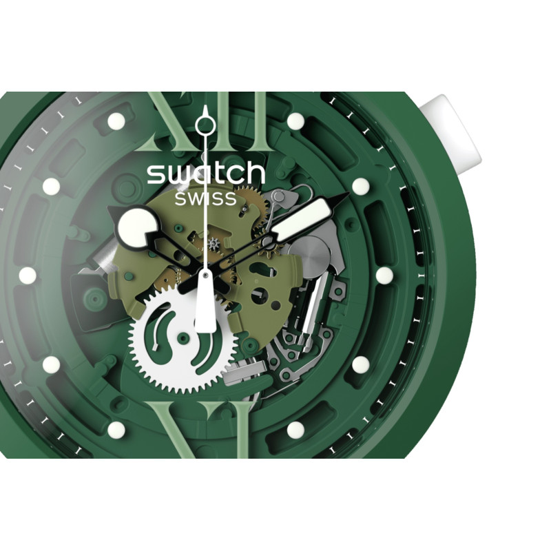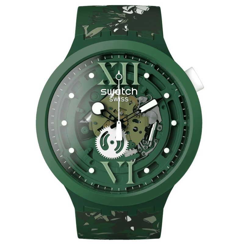 Montre Mixte Swatch Camoflower Green SB05G104 - Mouvement Quartz - Étanche 3 Bar - Matière du bracelet Silicone - Type de fermoir Demi Boucle - Matiére du Boitier Matériau biosourcé - Couleur du cadran Transparent - Couleur Du Boitier Vert - Forme du Boitier Rond - Dimensions: 47 x 11.75 x 44.80 mm - Garantie 2 ans