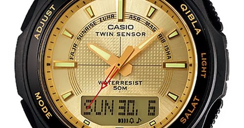 Montre Prière avec boussole pour Homme - Alarme de prière - Boussole numérique (QIBLA) - Dimensions (HxLxD): 49.8 x 44.6 x 12mm - Eclairage LED - Chronomètre 1/100 sec - 24 heures - Résistance à l'eau de 50 Mètres - Affichage date et jour de semaine - Fonction d'heure universelle - Pile durée de vie : 2 Ans - Bracelet en Résine - Poids: 43g
