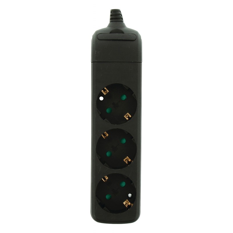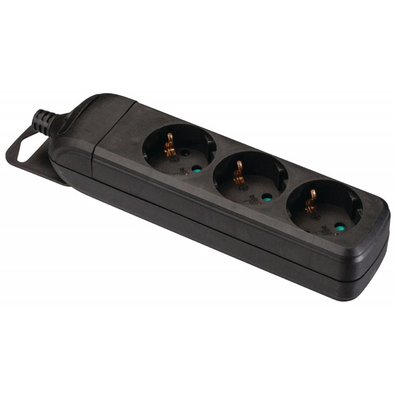 Multiprise 3 prises sans câble - Puissance: 3680 W - Fiche d'alimentation: Schuko / Type F - Disposition des prises de courant: 45° - Indice de protection: IP20 - Protection des enfants - Tension: AC 230 V - Longueur: 210 mm - Couleur Noir - Garantie 1 an