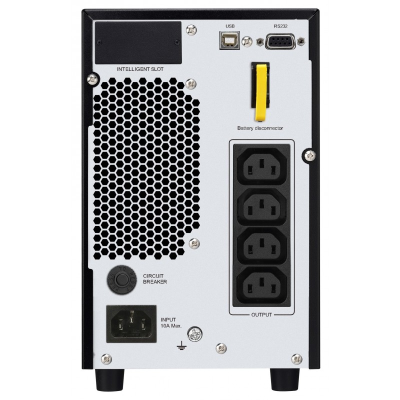 Onduleur en ligne double conversion - Puissance de sortie: 2000 VA - Tension nominale de sortie: 230V - Bypass interne et redémarrage automatiques - Mode ECO - Connecteurs: 4x IEC C13 / USB / Série - SmartSlot - Ecran LCD avec boutons de commande - Temps de recharge de la batterie: 4 heures - Garantie 2 ans (1 an sur batterie)
