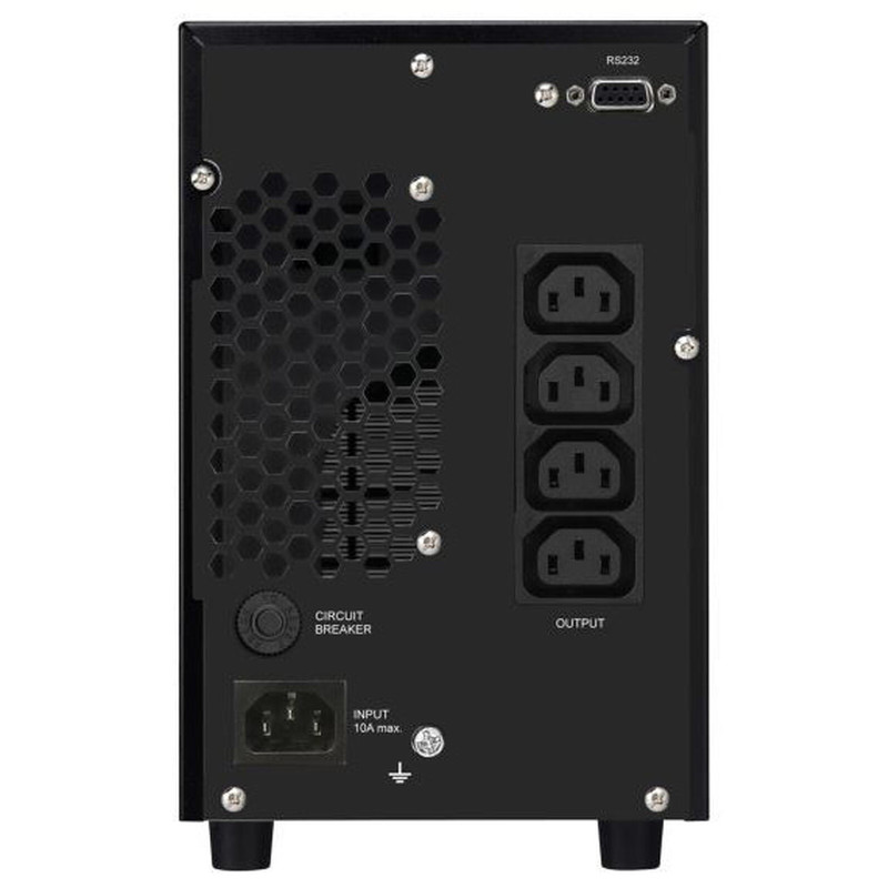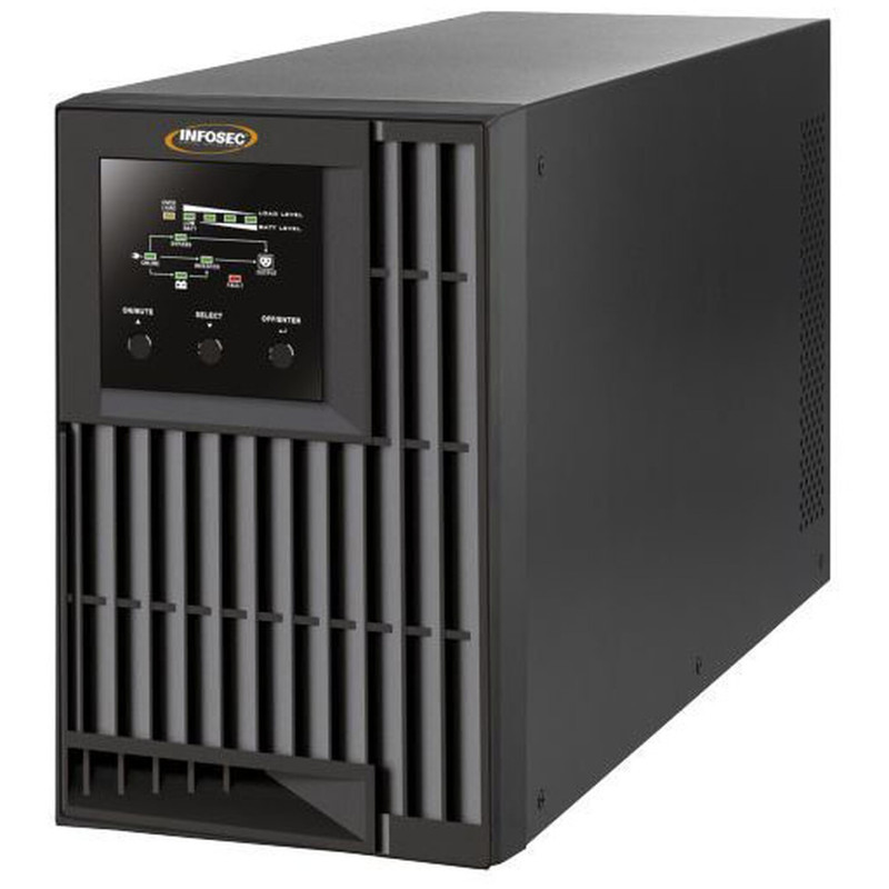 Onduleur INFOSEC E4 VALUE - écran LCD intégré affiche en temps réel des informations utiles - Puissance : 2000VA / 1600W - Format Tour - Technologie de l'onduleur : On Line Double Conversion - Phases : Monophasé/Monophasé - Obturateur de sécurité - Temps de recharge (minutes) : 4 heures à 90 % de la capacité - Autonomie à 50 % de charge (minutes) : 9 - Alarmes sonores : batterie faible, surcharge, défaut - Indicateurs visuels : Niveau de charge, Niveau de batterie, Mode secteur, Mode batterie, Mode bypass, Défaut - Fonction démarrage à froid - Garantie 1 an