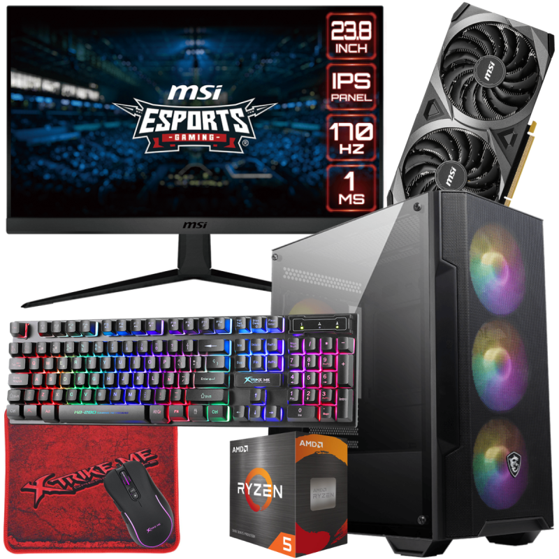 Setup Gamer FULL MSI Pc de Bureau Gaming / Ryzen 5 5500 / RTX 3060 VENTUS 2X OC 12G / 16 Go Avec Écran MSI 24" Full HD IPS 170 Hz