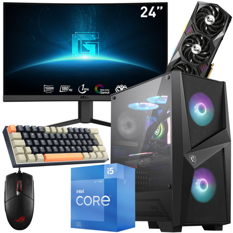 Setup Gamer MSI Pc de Bureau Gaming / i5-12400F / RTX 3070 Ti 8G / 32 Go Avec Écran Incurvé MSI 24" Full HD VA 180 Hz