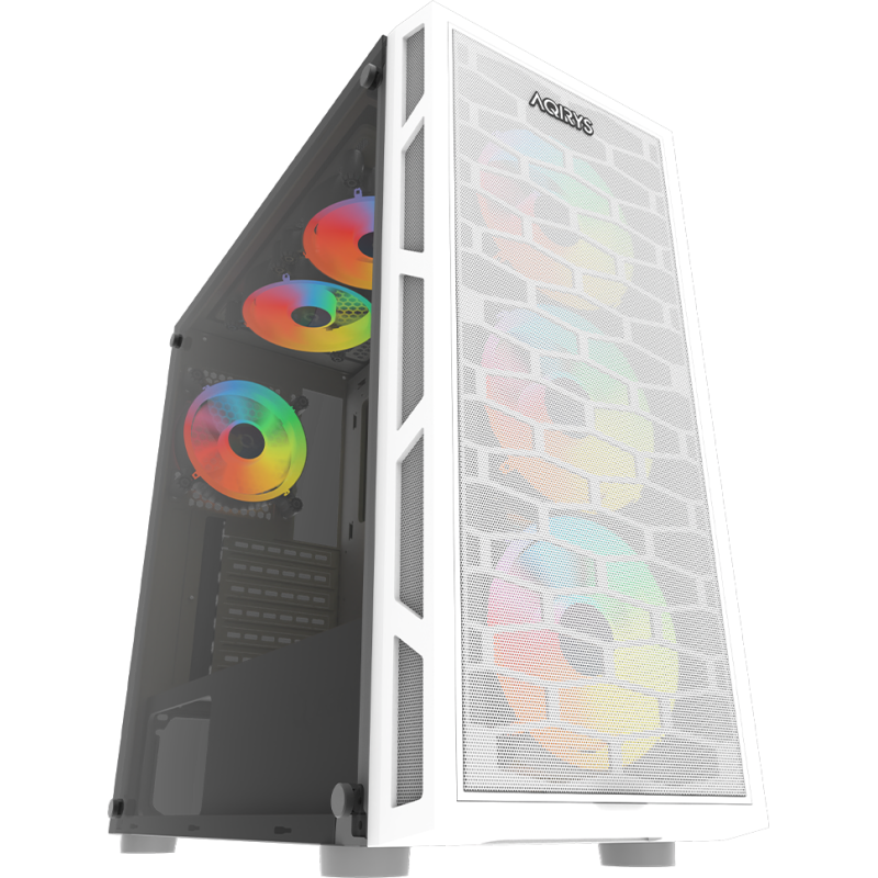 Boitier Gamer Midi Tour AQIRYS-ARCTURUS ARGB / White - Processeur Intel Core i5-13400F 13e génération, (jusqu'à 4.6 GHz, 20 Mo de mémoire cache) - RAM 32 Go (2x 16 Go) DDR4 RGB - Disque SSD 2.5" SATA 500 Go - Carte Graphique INNO3D GEFORCE RTX 4070 TWIN X2 OC White, 12 Go de mémoire GDDR6X dédiée - Carte mére MSI PRO H610M-E DDR4 - Boite d'alimentation modulaire AeroCool 80PLUS Gold / 650W / RGB - Garantie 1 an