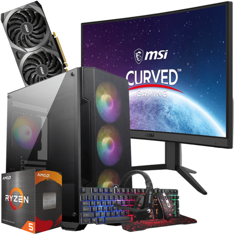 Setup Gamer Full MSI Pc de Bureau Gaming / Ryzen 5 5600X / RTX 3060 12G / 16 Go Avec Écran Incurvé MSI 24" Full HD VA 180 Hz