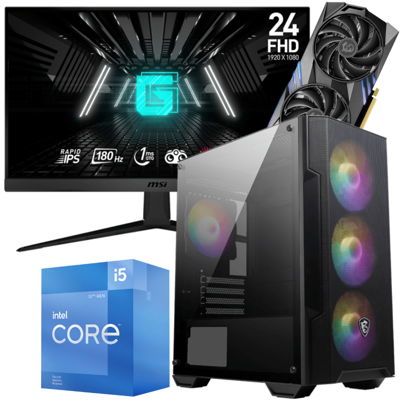 Setup Gamer MSI Pc de Bureau Gaming / i5-12400F / RTX 4060 Ti 8G / 32 Go Avec Écran MSI 24" Full HD 180 Hz