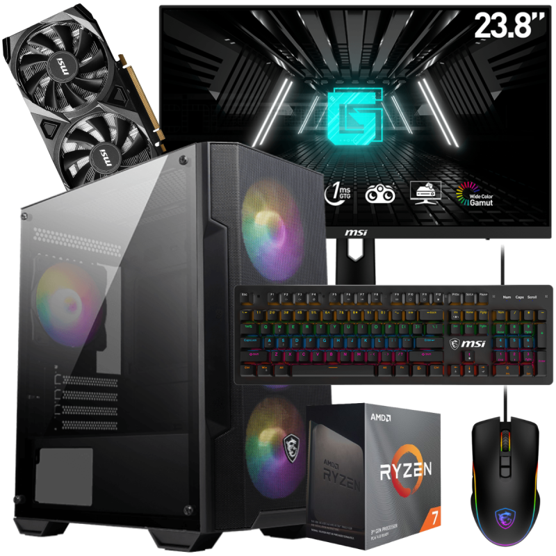 Setup Gamer MSI Pc de Bureau Gaming / Ryzen 7 5700X / RTX 3050 8G / 16 Go Avec Écran MSI 24" Full HD IPS 180 Hz