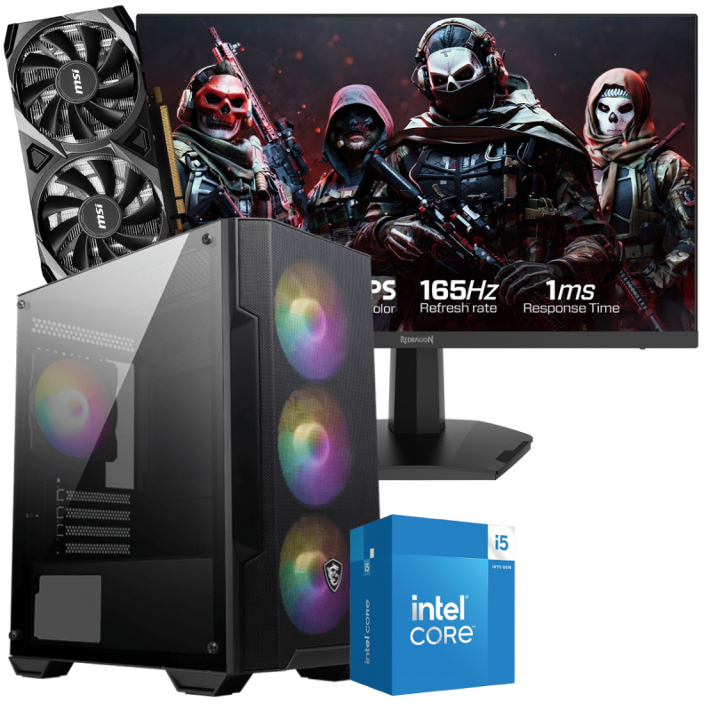 Setup Gamer Special Pc de Bureau Gaming / i5-14400F / RTX 3050 8G / 16 Go Avec Écran Gaming Redragon 24" Full HD IPS / 180 Hz