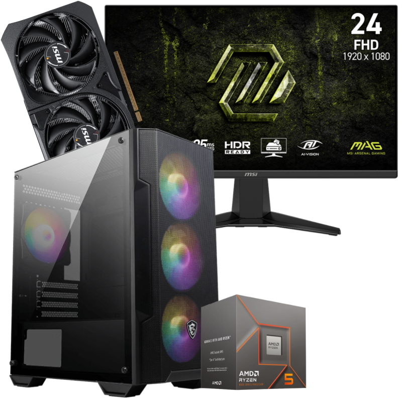 Setup Gamer Special Pc de Bureau Gaming / Ryzen 5 8400F / RTX 5060 8G / 16 Go Avec Écran Gaming MSI MAG 245F X24 24" Full HD IPS / 240 Hz