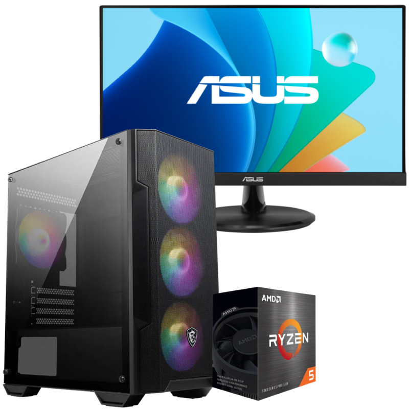 Écran Gaming ASUS VA249HG 23.8" Full HD IPS / 120 Hz / HDMI / VGA / Noir - Boîtier Gaming MSI MAG FORGE M100A / Noir - Processeur AMD Ryzen 5 5600GT, (jusqu'à 4.6 Ghz, 19 Mo de mémoire cache) - RAM 16 Go (1x 16 Go) DDR4 - Disque SSD M.2 512 Go - Carte graphique AMD Radeon Vega 7 Graphics - Carte mère MSI A520M-A PRO / mATX / DDR4 - Boîte d'alimentation MSI MAG A500N-H / 500 Watts / ATX / Noir - Avec Ensemble Clavier + Souris Gaming - Garantie 1 an