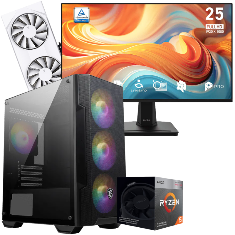 Setup Gamer Special Pc de Bureau Gaming / Ryzen 5 3600 / RX 9060 XT 8G / 16 Go Avec Écran Gaming MSI 24.5" Full HD / IPS / 144 Hz